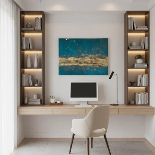 Quadro abstrato ideal para compor a decoração de salas, quartos, escritórios, halls de entrada, corredores, áreas de recepção e outros ambientes que valorizam o design e a sofisticação. Indicado para quem aprecia decorações contemporâneas, elegantes e de alto padrão, este quadro traz equilíbrio entre arte e estilo, transformando qualquer espaço em um ambiente inspirador.
